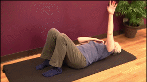 - Acuéstate sobre una colchoneta con los brazos apoyados en el suelo.